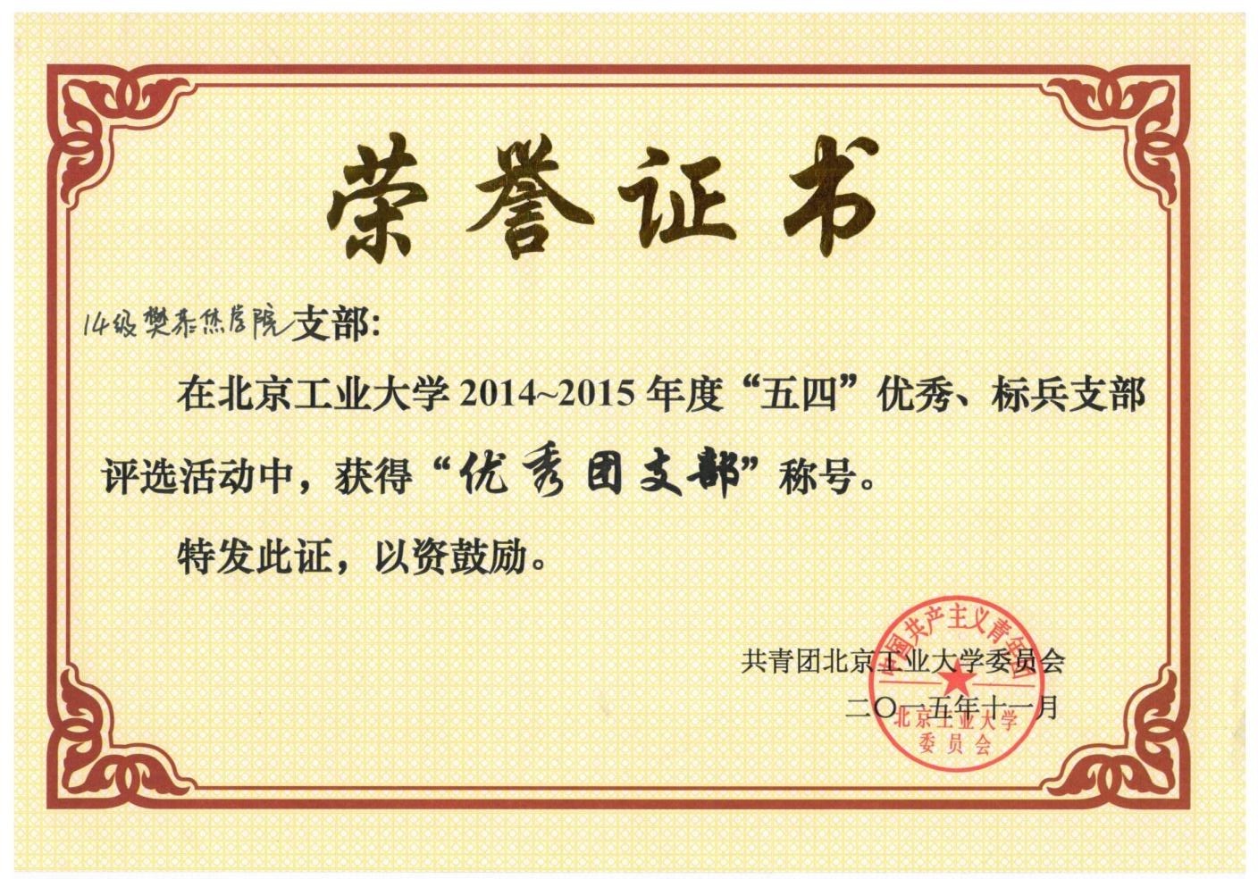 14级樊恭烋公司 荣获 五四优秀、标兵支部 优秀团支部