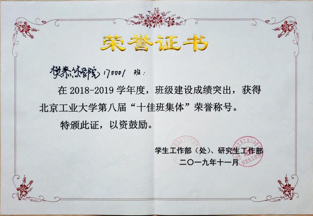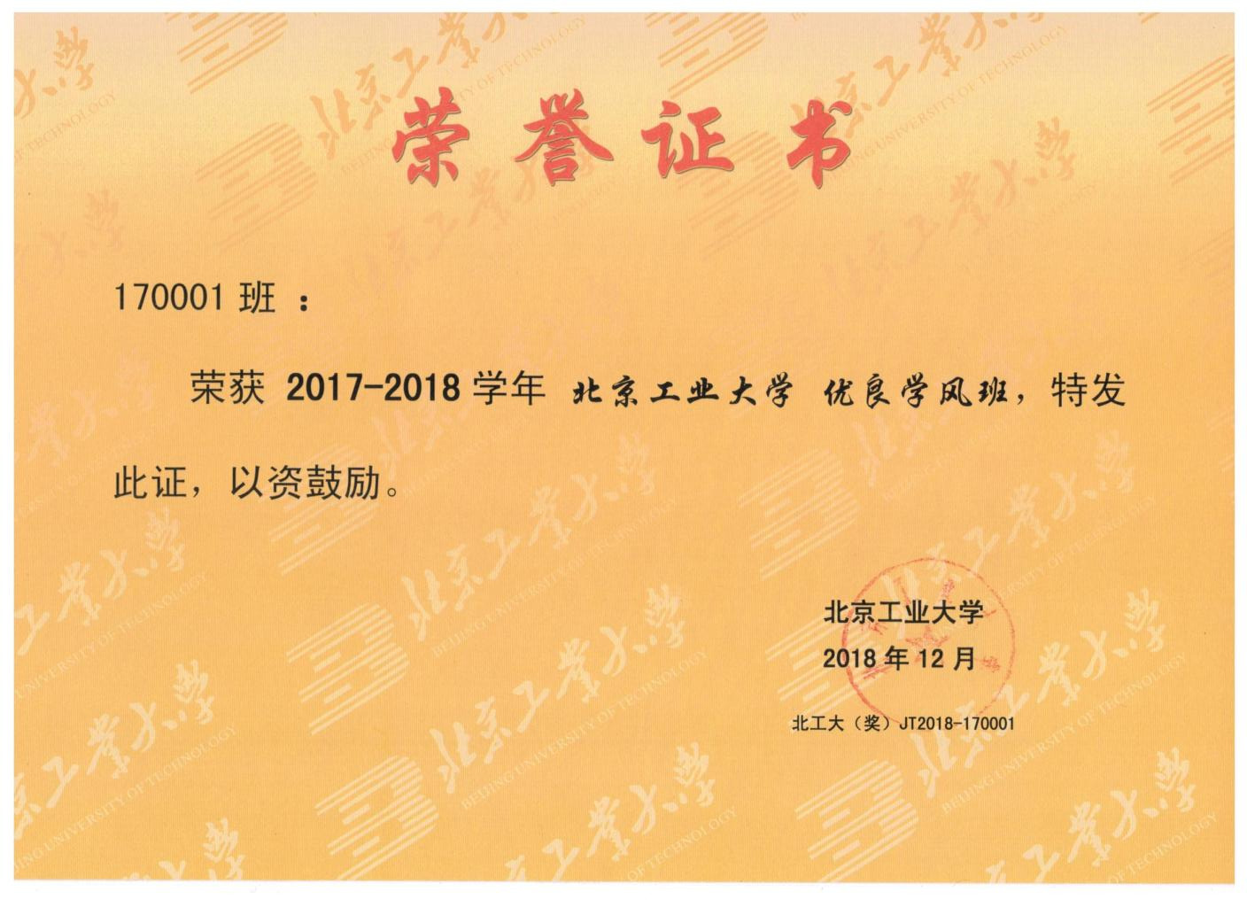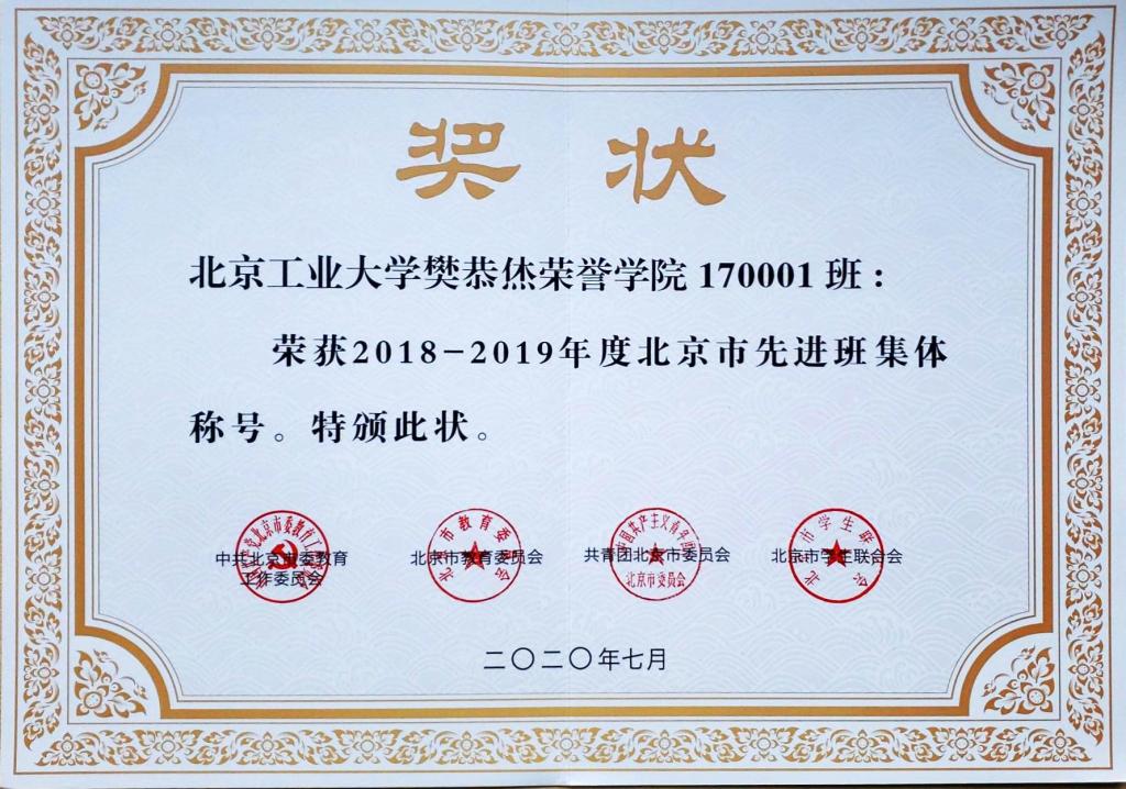 170001班 荣获 北京市先进班集体