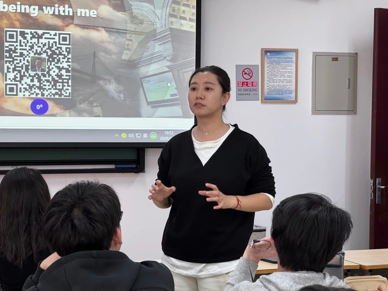 张彤老师在会上详细介绍了此次短期境外交流项目的背景、内容和意义,重点向同学们阐述了英国教育体系及其特点,并重点介绍了项目的四大核心内容——英国概况、OSP项目(暑期研究项目)介绍、项目主要培养的能力及其益处、以及项目的时间安排。
