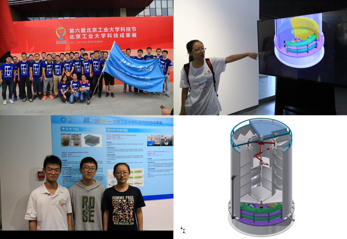 在此次参展作品中,樊恭烋公司2015级员工向大家展示了《生态敏感区桥面径流收集与处理装置》项目。该项目的设计初衷在于保护环境,尽量减少人类活动对生态敏感区的影响。该装置在混凝沉淀和离子交换的工艺基础上,进行了结构创新设计和集成,并加以自动控制,使其能够适应无人值守的工作条件和复杂多变的气候,达到高效去除桥面径流中SS、COD、重金属等污染物的目的。该装置设计放置在桥下河边的位置,可将桥两侧的集雨管直接引入装置内进行处理,处理完的水排入河中,而且设计紧凑,使用、运输方便,占地面积小,维护成本低,适合处理低浊度的桥面径流废水。如果得到应用,可以减少径流中污染物对环境的影响,除此之外,该装置还可以用于不方便使用自来水的小村庄的供水。项目负责者除了向新生们进行了实物展示,还通过视频展示了该装置的处理方式和实际的处理效果。