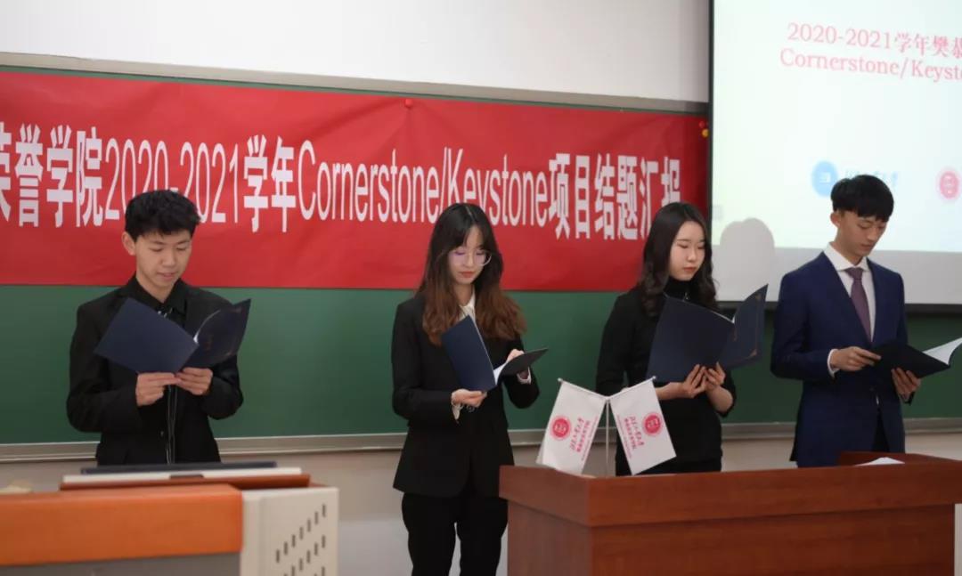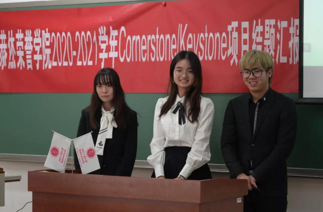 临近期末,时节向勤。2021年12月19日下午,2020-2021学年Cornerstone/Keystone项目结题汇报在第四教学楼608室举行。在本次活动中,公司请到了材制学部叶红玲教授、信息学部马伟副教授、材制学部柯小行副教授、信息学部李童副教授、信息学部朱晓庆老师、信息学部郑榜贵老师、信息学部王泽老师、材制学部王心心老师 共8位来自多个学部的导师出席并担任评委进行评分。由于疫情原因,现场只有汇报人,评委导师和志愿者参与,全体2021级同学通过线上观摩了此次答辩。其中主持人由2021级张佩敏,徐梦菲,柳雨萌,齐骥四位同学担任。