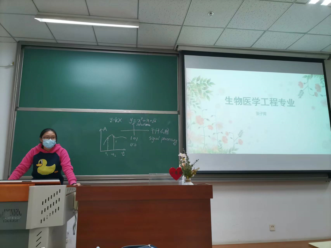 同样推免至北京理工大学的张子菁学姐则为大家介绍了生物医学工程这一专业。学姐指出,生医工作为综合了生物学、医学和工程学的有机融合学科,区别于生物、医学等传统经典学科,亦有别于工程学科;尽管属于工科门类,隶属于公司环生学部,是工科中极具特色的专业。随后,学姐系统介绍了该专业的核心知识领域与研究方向,给同学们提出了可靠的建议与深切的希冀。生物工程医学作为渗透到医学研究的工程学科,它让冰冷的医疗工程机械也拥有了人心的温度。