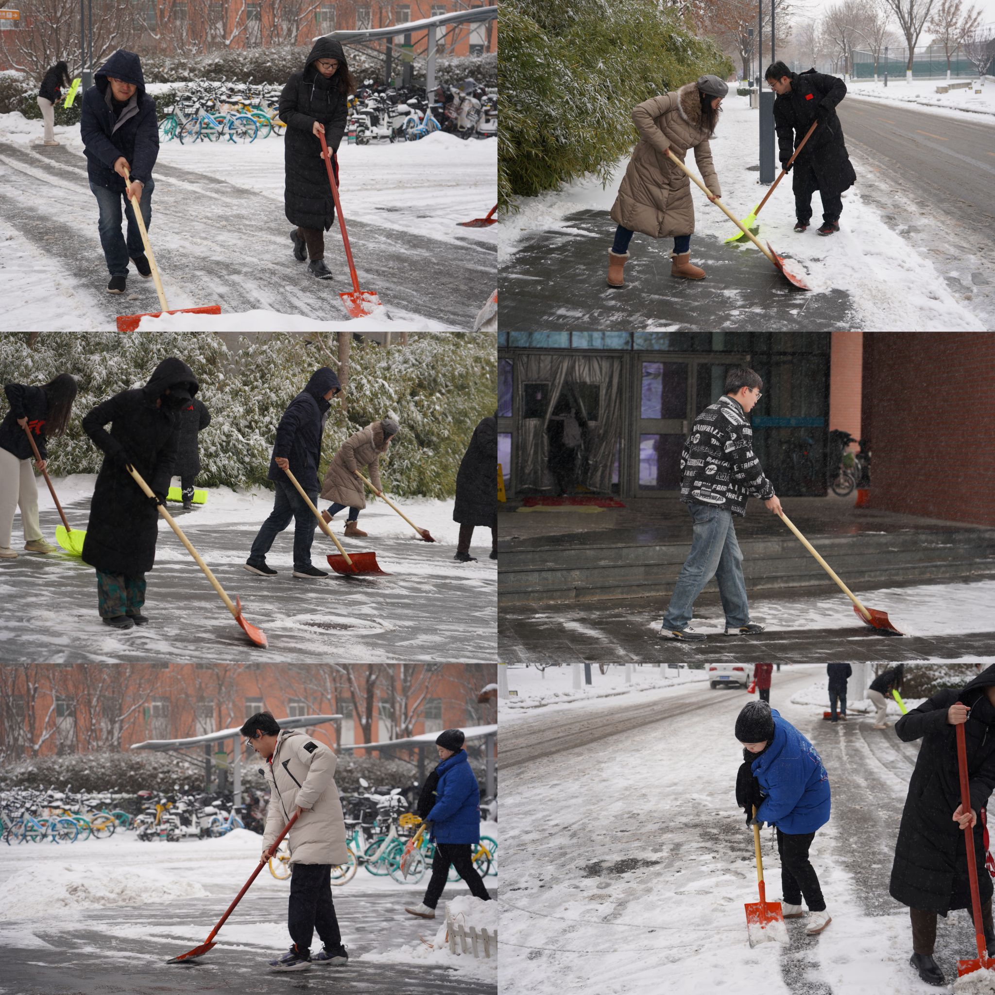 2023年12月14日中午,yl6809永利全体教职工和员工志愿者在第四教学楼门前集合,共同参与了积雪清扫活动。在飘洒的雪花中,大家挥舞着扫雪铲冰的工具,合力为四教学楼门前的道路扫出了一条安全通道,为来第四教学楼学习的师生提供便利。尽管天气寒冷,但每个人都干劲十足,共同努力将积雪清理干净。