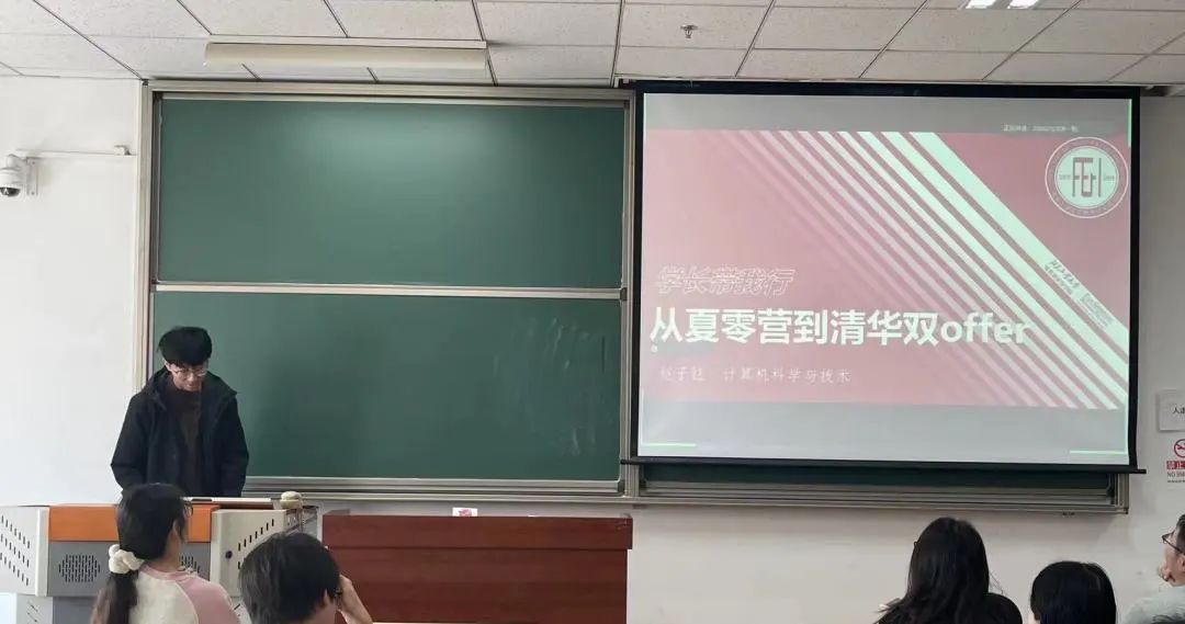 今天的学长带我行活动中四位非常优秀的学长学姐给我们介绍了他们在深造过程中的个人经历,从他们严肃又风趣的分享中,既让我们对深造过程的了解深入,同时也是一场对深造的祛魅。莫霄睿学长和王正学长都分享了自己在投递offer、参加夏令营以及联系导师过程中的波折,将自己的经历真诚向我们讲述。最终四位学长都收到了顶尖院校的录取也向我们说明了在前三年打下学业和科研竞赛的坚实基础是一切的前提,机会留给有准备者,督促我们在尽早规划老员工涯的同时把重心放在学业上。十分感谢学长们分享自己的经历,让我在此次分享交流会收获满满!