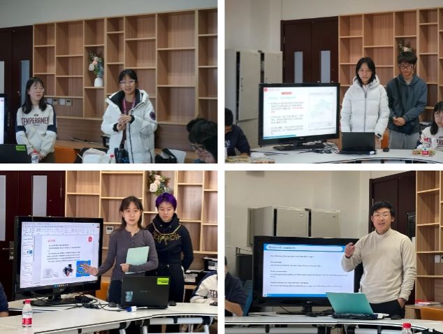 汇报结束后,孙老师、柯老师以及学长们对每个项目进行了细致入微的点评。他们从专业视角出发,不仅指出了项目的优势与待改进之处,还提出了建设性的建议。柯老师对太阳能转换储存装置的团队提出了希望,期待他们将最终目标更明确、更细化,将工程问题落实到具体的应用上。孙老师则建议客流分布团队突出创新点,挖掘不一样的角度,并推崇成果的可视化展示。学长们分享了他们在科研旅程中解决问题的实用技巧,为同学们提供了明确的指导和未来的科研方向。