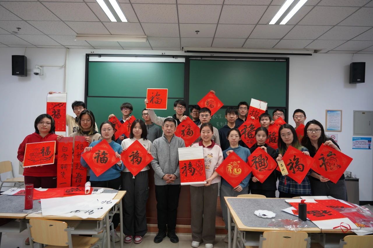 在最后的成果展示环节,大家纷纷展示自己的书法作品。有的“福”字苍劲有力,彰显笔墨张力;有的对联清新隽永,充满个人特色。现场不仅充满了同学们的欢声笑语,更弥漫着浓厚的文化气息与喜庆的节日氛围。