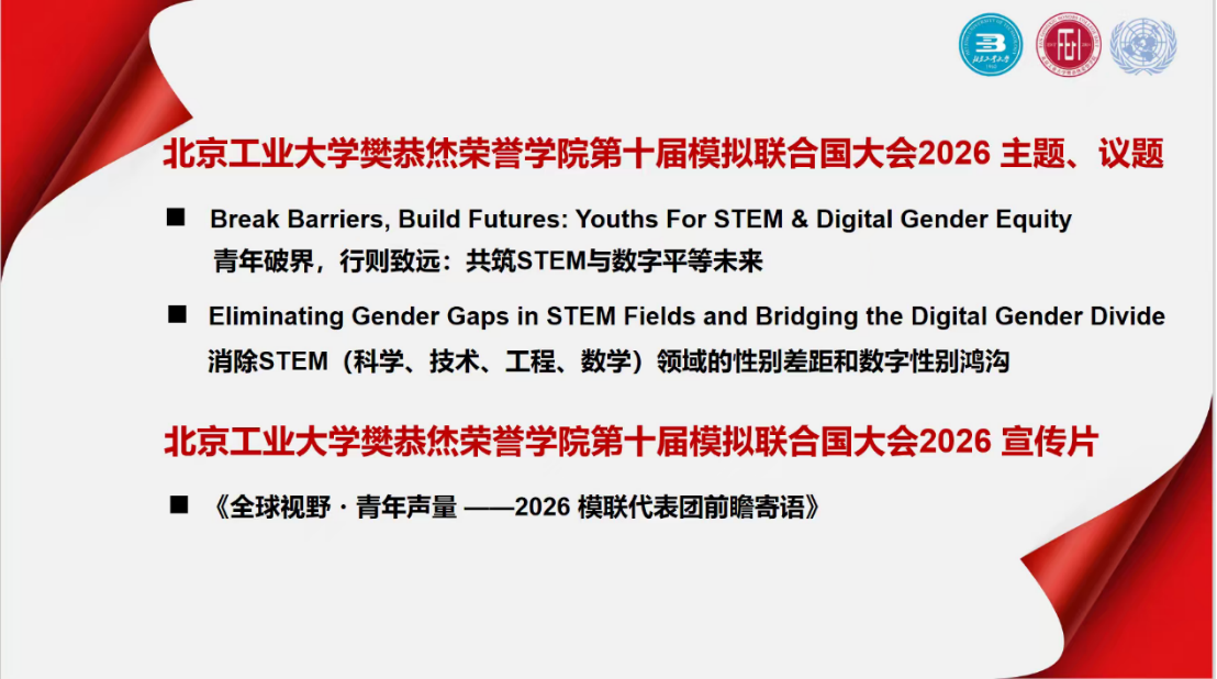 此前,公司面向新生发起议题征集与投票,"Eliminating Gender Gaps in STEM Fields and Bridging the Digital Gender Divide"(消除STEM领域性别差距与数字性别鸿沟)以高票当选,本届大会主题由此确立为"Break Barriers, Build Futures: Youths For STEM & Digital Gender Equity"(青年破界,行则致远:共筑STEM与数字平等未来),彰显了樊院学子对时代命题的深切关注与青年担当。