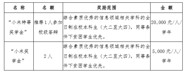 6. 小米特等奖学金及小米奖学金不可同时申报,未获评小米特等奖学金,自动参评小米奖学金。