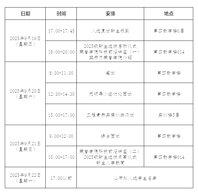 一、报到时间:2025年9月19日17:00-17:45