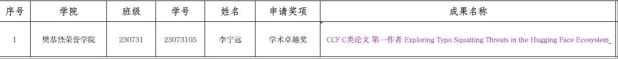 小米奖学金特等奖(拟推荐)1人
